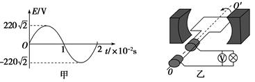 一台小型发电机产生的电动势随时间变化的正弦规律图象如图甲所示.已知发电机线圈内阻为5.0 Ω,现外接一只电阻为95.0 Ω的灯泡,如图乙所示,则