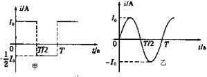 如图所示,A、B是两个完全相同的电热器,A通以图甲的方波交变电流,B通以图乙所示的正弦交变电流,则两电热器的电功率PA︰PB等于 ![]()