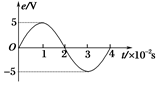 一个矩形线圈绕垂直于匀强磁场并位于线圈平面内的固定轴匀速转动,线圈中的感应电动势e随时间t变化如图5所示。则:( )![]()