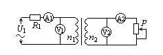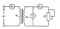 如图所示,当滑动变阻器滑动触头p逐渐向上移动时,接在理想变压器两端的四个理想电表示数 ![]()