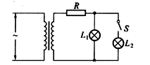 如图所示,理想变压器副线圈通过导线接两个相同的灯泡L1和L2。导线的等效电阻为R。现将原来断开的开关S闭合,若变压器原线圈两端的电压保持不变,则下列说法中正确的是 ( )![]()