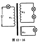 如图所示,接于理想变压器的四个灯泡规格相同,且全部正常发光,则这三个线圈的匝数比应为( )![]()