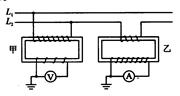 和L2是输电线,甲是电压互感器,乙是电流互感器.若已知变压比为1 000:1,变流比为100:1,并且知道电压表示数为220V,电流表示数为10A,则输电线的输送功率为( )![]()
