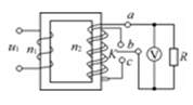 某同学自制变压器,在做副线圈时,将外表涂有绝缘层的导线对折后并在一起在铁芯绕n2圈,导线的两个端头为a、b,从导线对折的中点引出了一个c接头,连线成如图所示的电路(线圈电阻不计).已知原线圈匝数为n1,原线圈的输入电压为u1=U0sint,则下列结论正确的是( )![]()