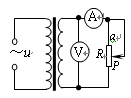 有一个理想变压器,原线圈1200匝,副线圈400匝,现在副线圈上接一个变阻器R,如图所示,则下列说法中正确的是 ( ) ![]()