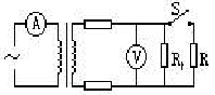如图变压器原线圈接交流高压,降压后通过输电线给用电器供电,当S断开时图中两电表示数电压U和电流I以及变压器输出功率P的变化为( )![]()
