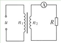 如图,有一理想变压器,原付线圈砸数比为n。原线圈接正弦交流电,电压为U,输出端接有一个交流电流表和一个电动机。电动机线圈电阻为R,当输入端接通电源后,电流表读数为I,电动机带动一重物匀速上升,下列判断正确的是( )![]()