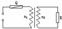 sin100πtV,Q为保险丝,其额定电流为1A,R为负载电阻,如图所示,变压器正常工作时R的阻值![]()