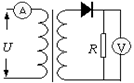 右图为一理想变压器,其原副线圈匝数比n1:n 2=1:10,副线圈与阻值R=20Ω的电阻相连。原线圈两端所加的电压u=20