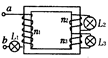 如图所示,L1、L2、L3为三个完全相同的白炽灯,接在理想变压器上,变压器的初级和次级线圈匝数比都是3:1,当变压器ab端接交流电压时,L2、L3的实际功率为P,此时L1的实际功率为( )![]()