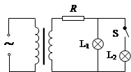 用电高峰期,电灯往往会变暗,其原理可简化为如下物理问题.如图所示,理想变压器的副线圈上,通过输电线连接两只相同的灯泡L1和L2,输电线的等效电阻为R,原线圈输入有效值恒定的交流电压,当开关S闭合时,以下说法中正确的是![]()