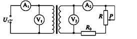 如图是街头变压器通过降压给用户供电的示意图。变压器输入电压是市电网的电压,不会有很大的波动。输出电压通过输电线输送给用户,输电线的电阻用R0表示,变阻器R表示用户用电器的总电阻,当滑动变阻器触头P向下移动时,下列说法中正确的是 ![]()