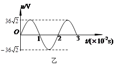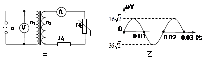 。当原线圈两端接如图乙所示的正弦交流电压时,下列说法中正确的是![]()