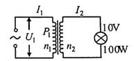 如图,理想变压器的原、副线圈匝数比n1:n2=20:1.—个标有“10V 100W"的灯泡正常发光时( )![]()