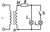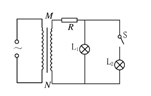 如图所示,理想变压器的副线圈上通过输电线接有两个相同的灯泡L1和L2,输电线的等效电阻为R,开始时,开关S断开.当S接通时,以下说法中正确的是( ) ![]()