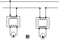 如图所示为两个互感器,在图中圆圈内a、b表示电表,已知电压比为100,电流比为10,电压表的示数为220V,电流表的示数为10A,则( ) ![]()