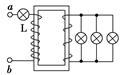 如图所示,一理想变压器原、副线圈匝数比为3∶1,副线圈上接三个相同的灯泡,均能正常发光,原线圈中再串一个相同的灯泡L,则( )![]()