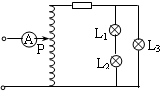 如图所示,接在照明电路中的自耦变压器的副线圈上通过输电线接有三个灯泡L1、L2和L3,输电线的等效电阻为R。当滑动触头P向上移动一段距离后,下列说法正确的是:( )![]()