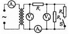 如图所示为理想变压器,A1、A2为理想交流电流表,V1、V2分别为理想交流电压表,R1、R2、R3为电阻,原线圈两端接电压一定的正弦交流电源,当开关S闭合时,各交流电表的示数变化情况应是( )![]()
