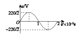 一理想变压器原、副线圈匝数比n1∶n2=11∶5,原线圈与正弦交变电源连接,输入电压u随时间t的变化规律如图所示,副线圈仅接入一个10 Ω的电阻,则( )![]()