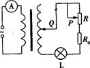 一理想变压器的原线圈连接一只交流电流表,副线圈接入电路的匝数可以通过触头Q调节,如图所示.在副线圈两输出端连接灯泡L、定值电阻R0和滑动变阻器R,在原线圈上加一电压为U的交变电流,则( )![]()