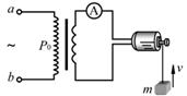 如图所示,理想变压器原、副线圈的匝数比为k,输出端接有一交流电动机,此电动机线圈的电阻为R。当原线圈两端接有正弦交变电流时,变压器的输入功率为P0,电动机恰好能带动质量为m的物体以速度v匀速上升,此时理想交流电流表A的示数为I。若不计电动机的机械能损耗,重力加速度为g,则下列说法正确的是![]()