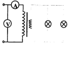 如图所示,理想变压器原、副线圈匝数比为10:1,两个标有“6V, 3W”的小灯泡并联在副线圈的两端,当两灯泡都正常工作时,原线圈电路中电压表和电流表(可视为理想的)的示数分别是![]()