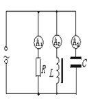 如图所示,把电阻、电感器、电容器并联接到一交流电源上,三个电流表的示数相同.若保持电源电压不变,而将频率加大,则三个电流表的示数I1、I2、I3大小的关系是:( )![]()