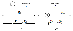 如图所示的甲、乙两个电路,电感线圈的自感系数足够大,且直流电阻不可忽略,闭合开关S,待电路达到稳定后,灯泡均能发光。现将开关S断开,这两个电路中灯泡亮度的变化情况可能是 ( )![]()