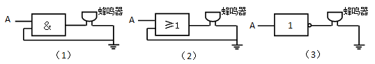 如图所示,是由基本门、蜂鸣器组成的三个简易控制电路,当A端输入高电势时,能使蜂鸣器发声的![]()