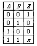 在集成电路中,经常用若干基本门电路组成复合门电路,如图所示,为两个基本门电路组合的逻辑电路,根据真值表,判断虚线框内门电路类型及真值表内x的值( )![]()