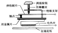 | B.常温下,上下触点接触;温度过高时,双金属片发生弯曲使上下触点分离 |