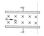 如图所示,两块平行金属板间有正交的匀强电场和匀强磁场,一带电粒子垂直于电场和磁场方向射入两板间,不计重力,射出时它偏离了原方向。现要使它沿入射方向做直线运动,可以采取的办法是( )![]()