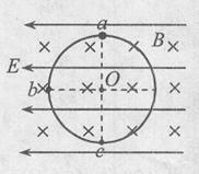 如图所示,空间存在水平向左的匀强电场和垂直纸面向里的匀强磁场,电场和磁场相互垂直。在电磁场区域中,有一个竖直放置的光滑绝缘圆环,环上套有一个带正电的小球。O点为圆环的圆心,a、b、c