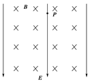 如图所示,质量为m,电荷量q的小球从P点静止释放,下落一段距离后进入正交的匀强电场和匀强磁场,电场方向水平向左,磁场方向垂直纸面向里,则小球在通过正交的电场和磁场区域时的运动情况是 ( )![]()