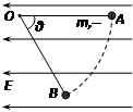 如题21图所示,水平向左的匀强电场中,长为L的绝缘细线一端固定于O点,另一端系一质量为m、电荷量为q的可视为质点的带正电小球.将小球拉到使细线水平伸直的A点,无初速释放小球,小球沿圆弧到达最低位置B时速度恰好为零,重力加速度为g以下说法正确的是![]()