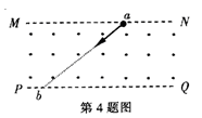 如图所示,在MN、PQ间同时存在匀强磁场和匀强电场,方向垂直纸面水平向外,电场在图中没有标出。一带电小球从a 点射入场区,并在竖直面内沿直线运动至b点,则小球![]()