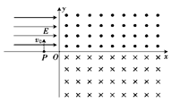 如图所示,两金属板间有水平方向的匀强磁场和竖直向下的匀强电场.一带正电的小球垂直于电场和磁场方向从O点以速度v0飞入此区域,恰好能沿直线从P点飞出此区域.如果只将电场方向改为竖直向上,则小球做匀速圆周运动,加速度大小为a1,经时间t1从板间的右端a点飞出,a与P间的距离为y1;如果同时撤去电场和磁场,小球加速度大小为a2,经时间t2从板间的右端b点以速度v飞出,b与P间的距离为y2.a、b两点在图中未标出,则![]()