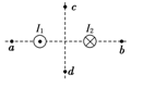 两根通电的长直导线平行放置,电流分别为I1和I2,电流的方向如图10所示,在与导线垂直的平面上有a、b、c、d四点,其中a、b在导线横截面连线的延长线上,c、d在导线横截面连线的垂直平分线上.则导线中的电流在这四点产生的磁场的磁感应强度可能为零的是( )![]()