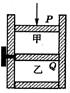 如图所示,竖直放置的固定容器及质量为m的可动光滑活塞P都是不导热的,中间有一导热的固定隔板Q,Q的上下两边盛有压强、温度和体积均相同的同种气体甲和乙,现用外力F将活塞P缓慢向下移动一段距离,则在移动P的过程中![]()