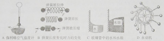 | A.伽利略空气温度计是根据水的热膨胀原理来设计的,不受外界气压影响 |