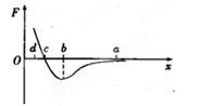 如图所示,甲分子固定在坐标原点O,乙分子位于x轴上,甲分子对乙分子的作用力与两分子间距离的关系如图中曲线所示,F>0表示斥力,F<0表示引力,a、b、c、d为x轴上四个特定的位置,现把乙分子从a处由静止释放,则![]()