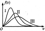 某种气体在不同温度下的气体分子速率分布曲线如图所示,图中f(v)表示v处单位速率区间内的分子数百分率,所对应的温度分别为TI,TII,TIII,则 ( ) ![]()