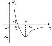 如图所示,甲分子固定在坐标原点O,乙分子沿x轴运动,两分子间的分子势能EP与两分子间距离的关系如图中曲线所示,图中分子势能的最小值为-E0。若两分子所具有的总能量为0,则下列说法中正确的是:![]()