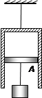 如图所示,吊在天花板下的导热气缸中有一个可无摩擦上下移动且不漏气的活塞A,活塞A的下面吊着一个重物,汽缸中封闭着一定量的理想气体.起初各部分均静止不动,外界大气压保持不变,针对汽缸内的气体,当状态缓慢发生变化时,下列判断正确的是![]()