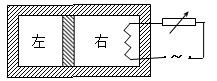 如图,水平放置的密封气缸内被一竖直隔板分隔为左右两部分,隔板可在气缸内无摩擦滑动,右侧气体内由一电热丝。气缸壁和隔板均绝热。初始时隔板静止,左右两边气体温度相等。现给电热丝提供一微弱电流,通电一段时间后切断电源。当缸内气体再次达到平衡时,与初始状态相比( ) ![]()