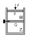 如图所示,竖直放置的固定容器及质量为m的可动光滑活塞P都是不导热的,中间有一导热的固定隔板Q,Q的上下两边分别盛有初温相同的同种气体甲和乙,现用外力F将活塞P缓慢向下移动一段距离,则在移动P的过程中( )![]()