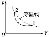 (2011年泉州模拟)已知理想气体的内能与温度成正比.如图13-2-10所示的实线为汽缸内一定质量的理想气体由状态1到状态2的变化曲线,则在整个过程中汽缸内气体的内能( )![]()