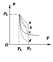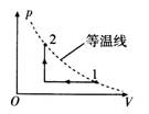 已知理想气体的内能与温度成正比.如图所示的实线为汽缸内一定质量的理想气体由状态1到状态2的变化曲线,则在整个过程中汽缸内气体的内能 ( )![]()