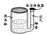 如图所示,某种自动洗衣机进水时,与洗衣缸相连的细管中会封闭一定质量的空气,通过压力传感器感知管中的空气压力,从而控制进水量。设温度不变,洗衣缸内水位升高,则细管中被封闭的空气( ) ![]()